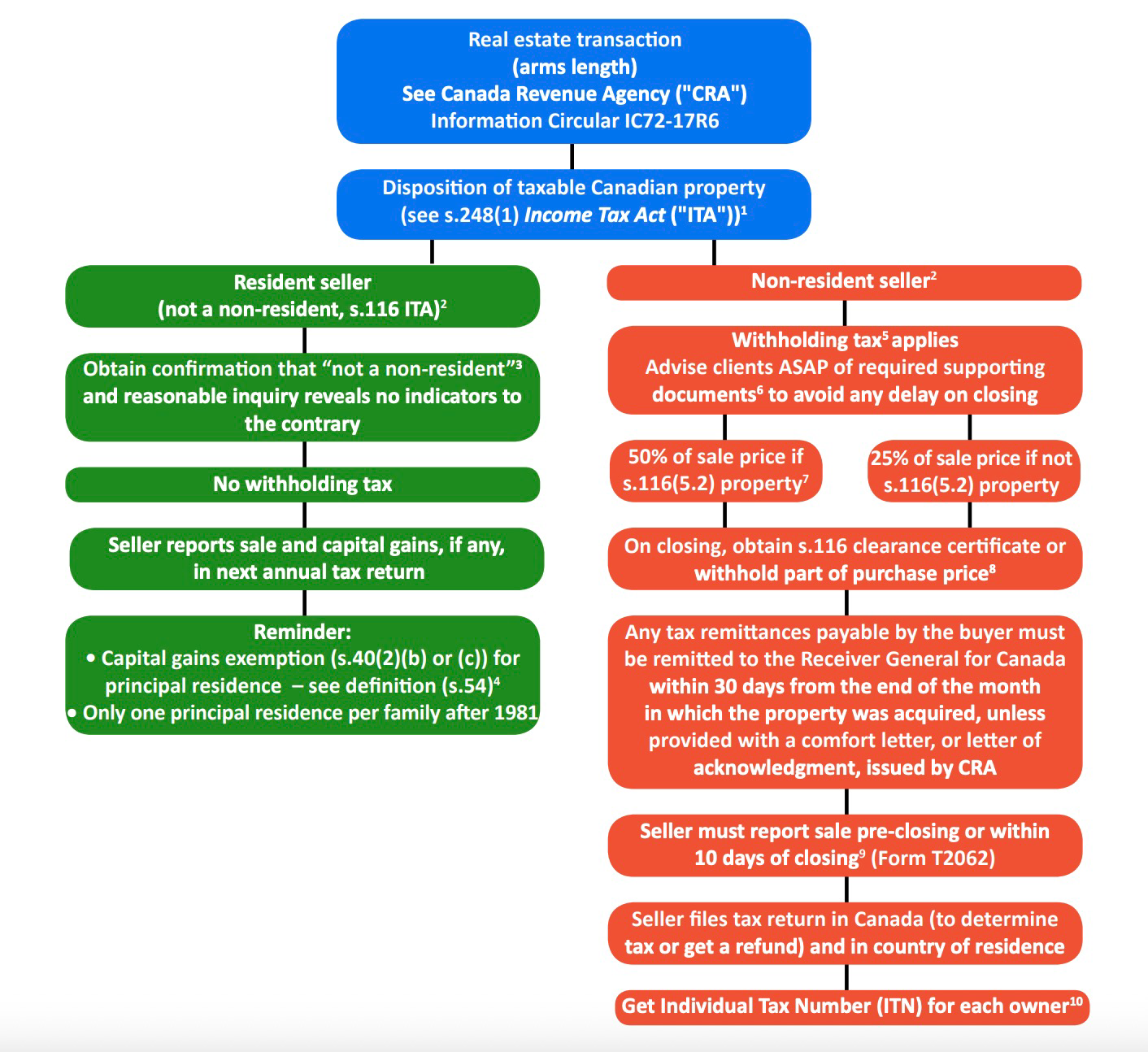 If a seller is not a resident of Canada for tax purposes, the buyer is legally required to hold back a portion of the purchase price and wait for clearance from the CRA before releasing those funds.