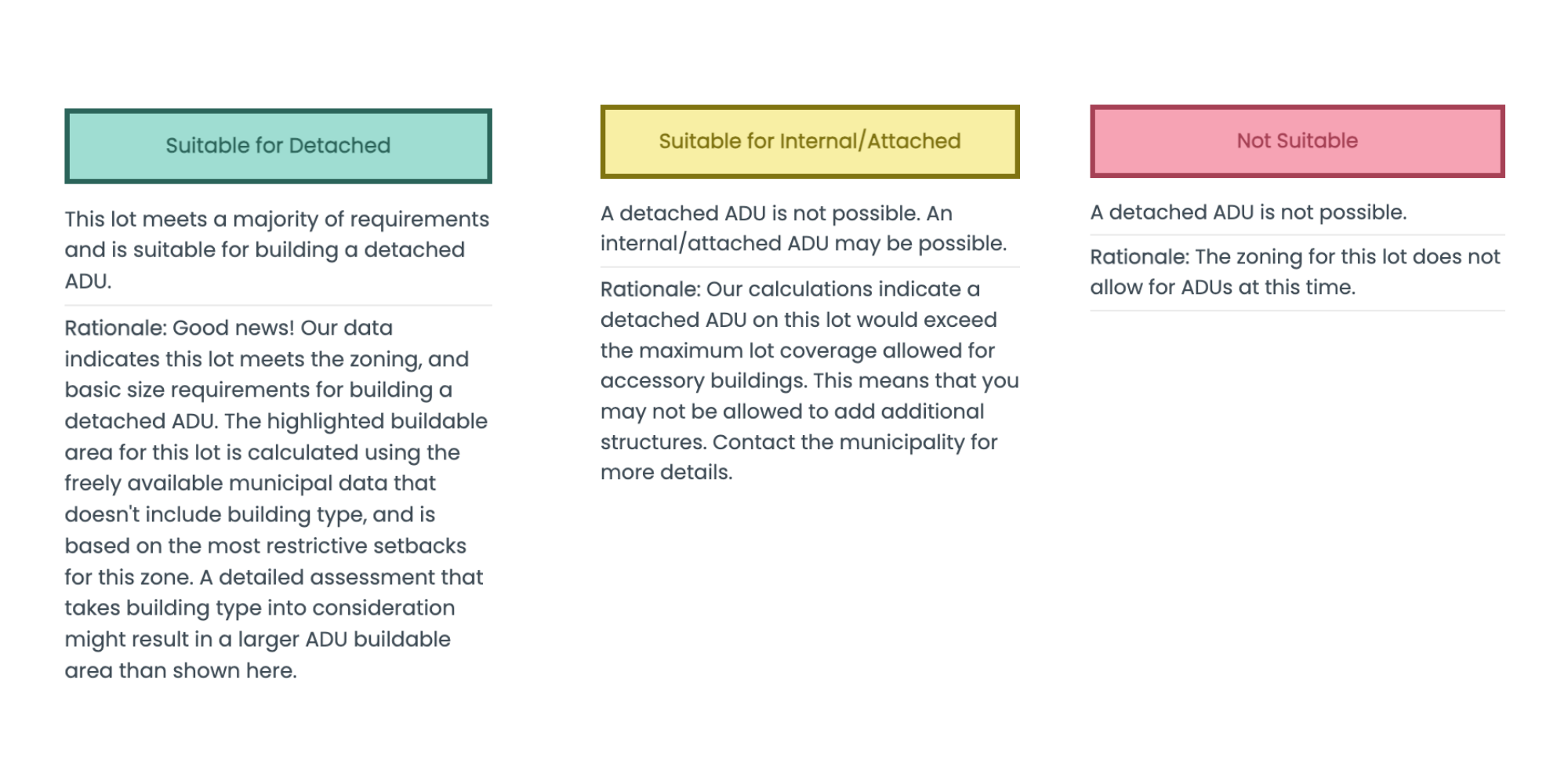 By cross-referencing the address with municipal zoning data, it provides an instant read on whether the property meets the criteria for an ADU.